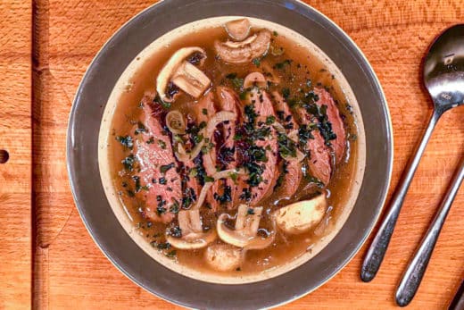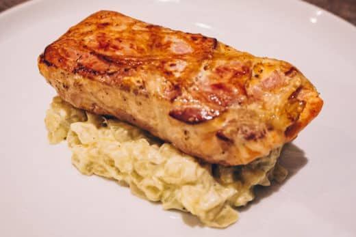- des tranches fines de dinde avec des lardons, de la crĂšme et du poireau ;