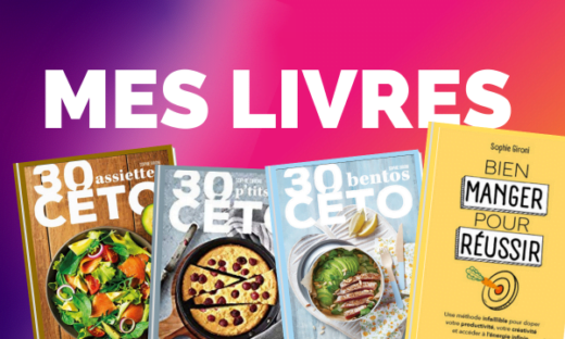 Découvre mes 3 livres de recettes céto et mon guide d’optimisation de la productivité au travers d’une alimentation réduite en glucides.