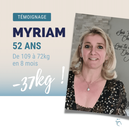 Myriam s’est inscrite à mon programme en juillet 2021, et a perdu 37kg ! Pas avec un ‘régime keto’ magique, mais grâce à une alimentation réduite en glucides adaptée à SON métabolisme.