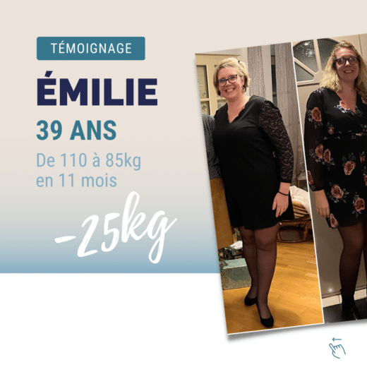 Grâce à la mise en place d’une alimentation réduite en glucides individualisée, Emilie a démarré une belle perte de poids !