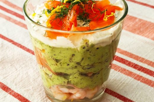 - Mettre deux c. à soupe de coulis dans le fonds et déposer joliment le tartare par-dessus. Garnir avec un copeau de parmesan et une feuille de roquette.